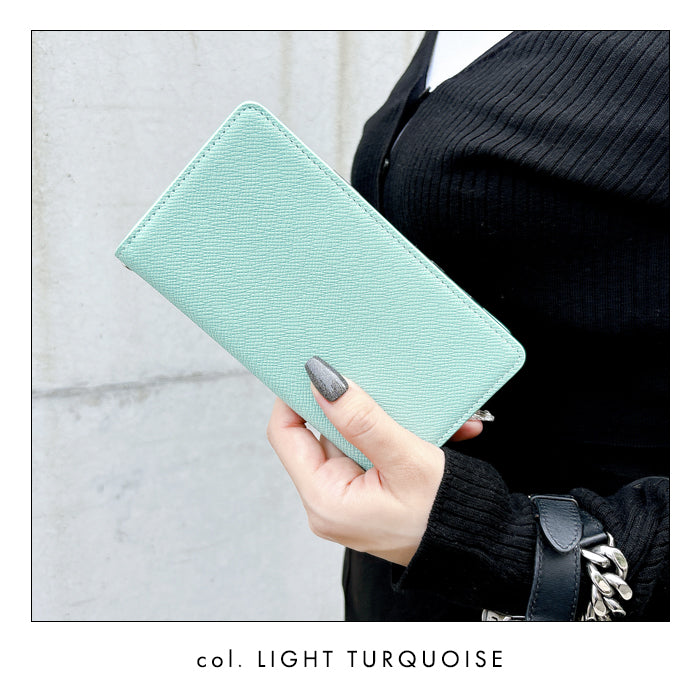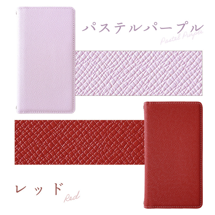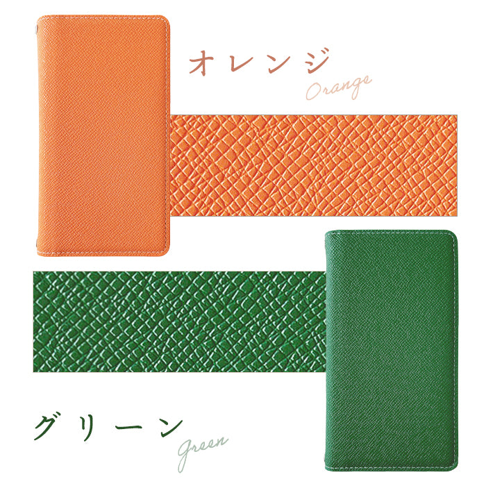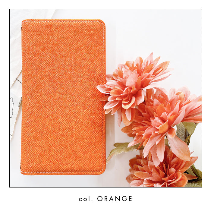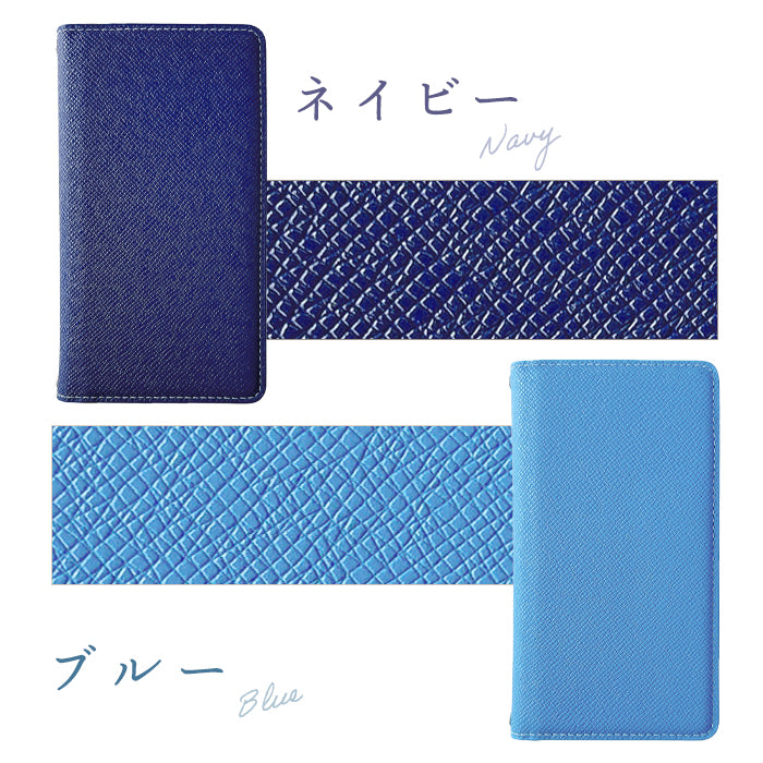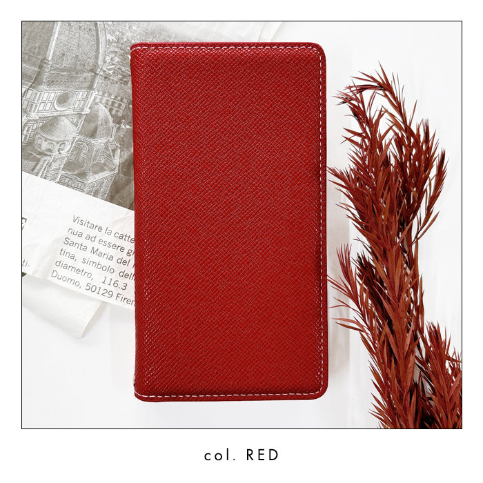 上品な質感のあるサフィアーノ生地に、鮮やかなサフィアーノの刺繍を施した手帳型ケースです。